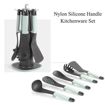 Conjunto de utensílios de cozinha de nylon de 6 peças com suporte de armazenamento rotativo |